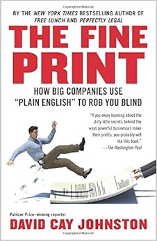 David Cay Johnston: "The Fine Print: How Big Companies Use 'Plain English' to Rob You Blind" David Cay Johnston discusses his book "The Fine Print: How Big Companies Use 'Plain English' to Rob You Blind." *This video is unmonetized, and is for education, non-commercial purposes only. The Fine Print: How Big Companies Use "Plain English" to ... Johnston shares solutions you can use to fight back against the obscure fees and taxes, and to help end these devious practices. ... Cancel Remove. Sign in. Watch fullscreen. The Fine Print: How Big Companies Use "Plain English" to Rob You Blind Review. velixat. ... Brian Lara Uses Harsh Words Against ICC On Fine On Wahab Riaz-I Will Pay His ... The Fine Print: How Big Companies Use "Plain English" to ... This item: The Fine Print: How Big Companies Use "Plain English" to Rob You Blind by David Cay Johnston Paperback $12.91 Only 8 left in stock - order soon. Sold by Clear Quality Products and ships from Amazon Fulfillment.